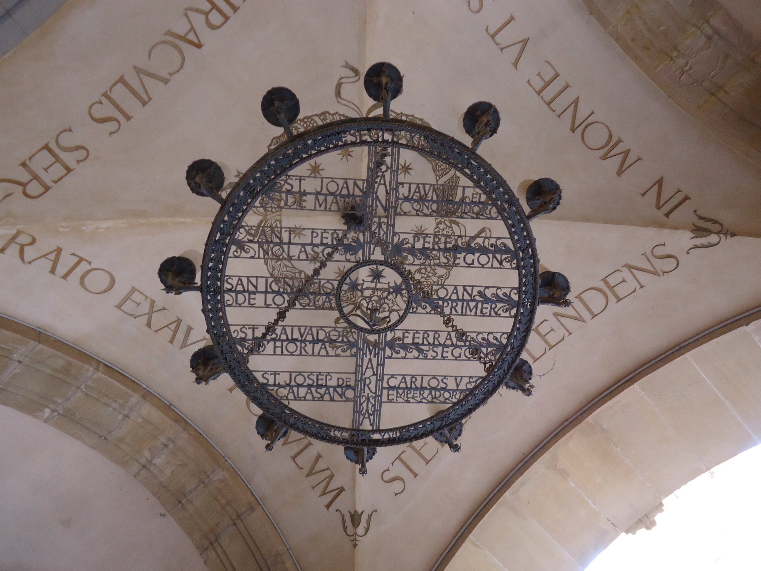 Still in Montserrat. Incredibly cool light fixture with names of saints incorporated.