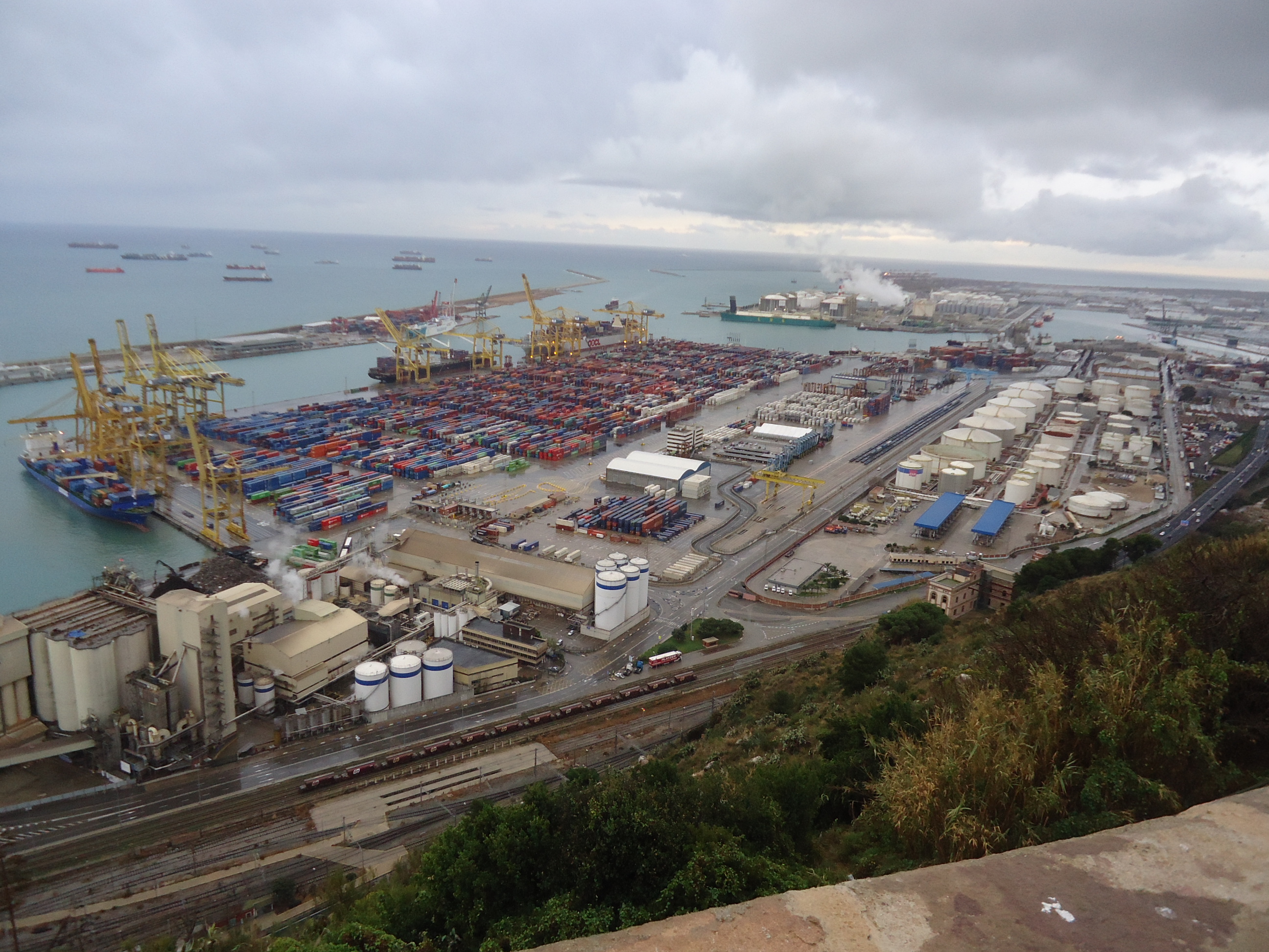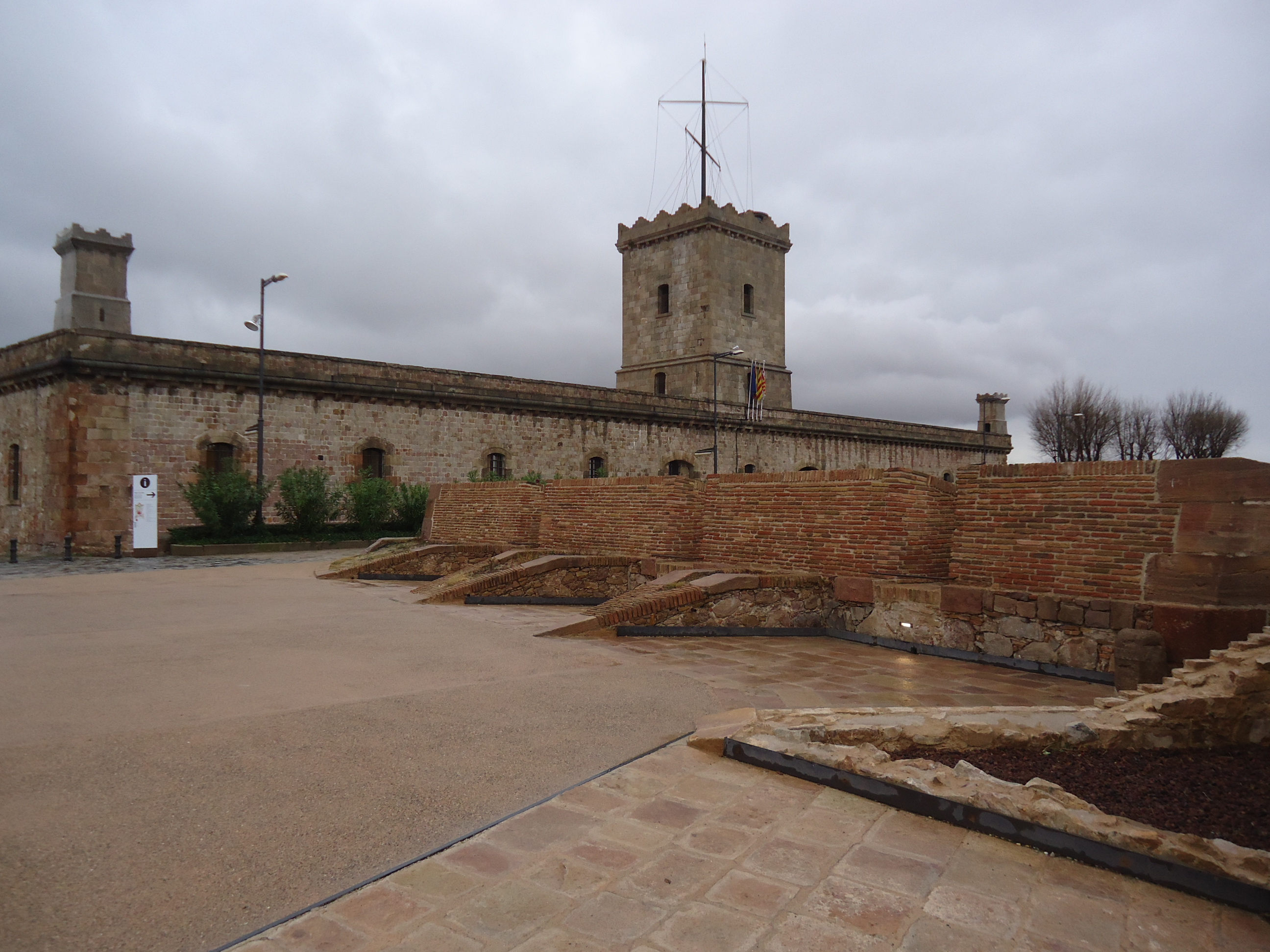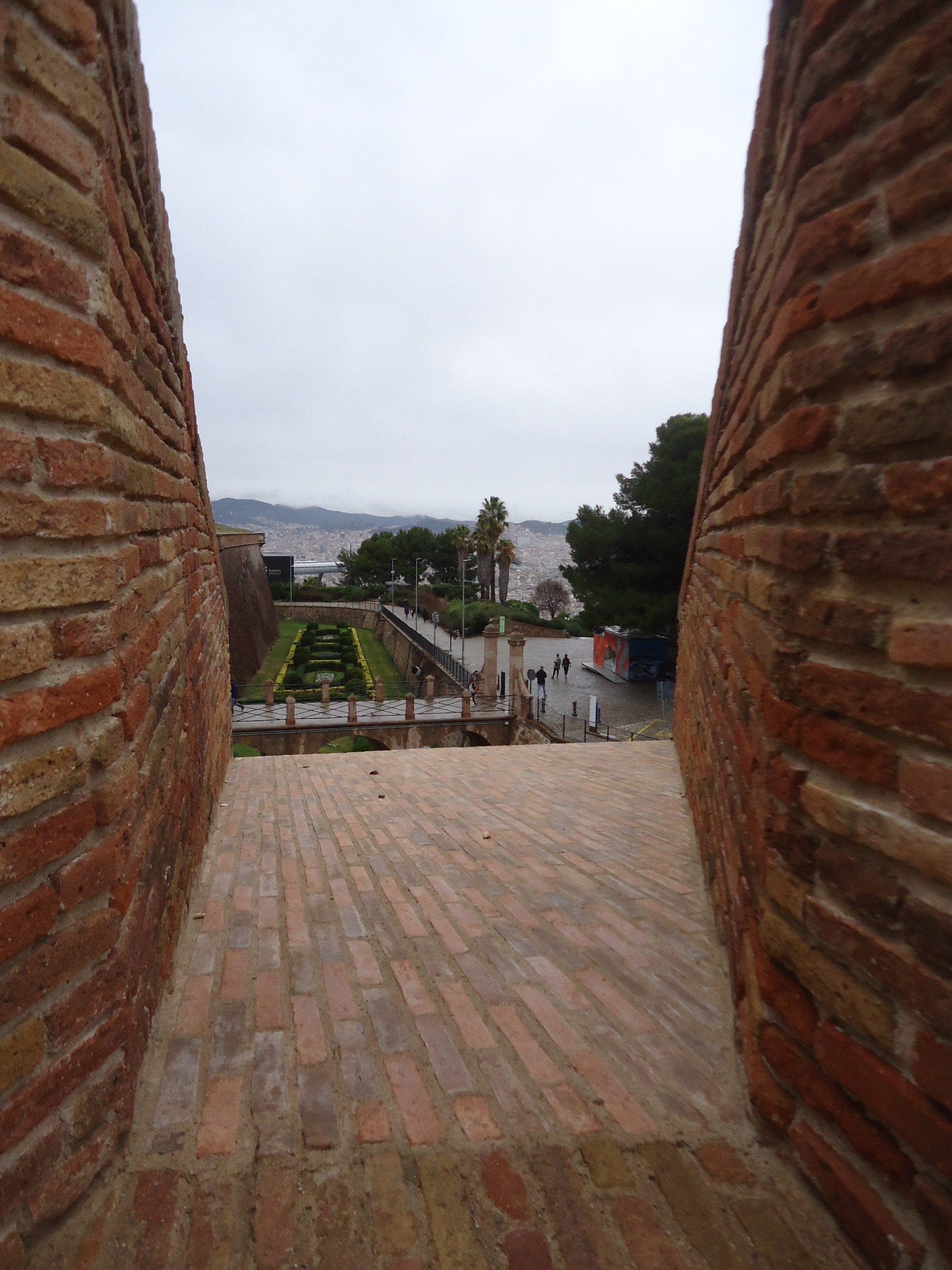 One day we took the subway for a few stops, then took a funicular railway up a steep hill, then took a cable car to get to Montjuic, a mountain overlooking Barcelona. The cable car takes you right to the castle: