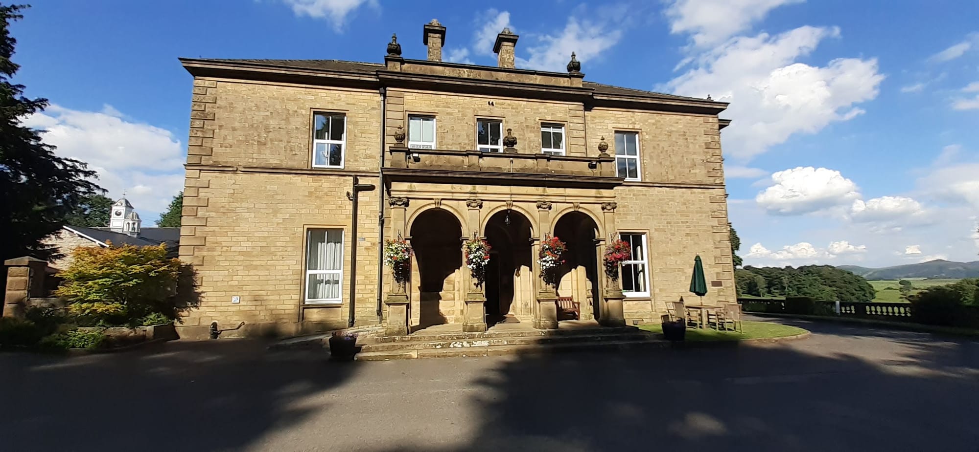 It was an absolutely gorgeous day. Maybe wasted on traveling. On the upside, I have gotten too much sun during the past two days of hiking, despite cloudy days, so I wouldn't have wanted to be out in full sun all day. Newfield Hall in Malham is magnificent. The entrance is on the side of the building.