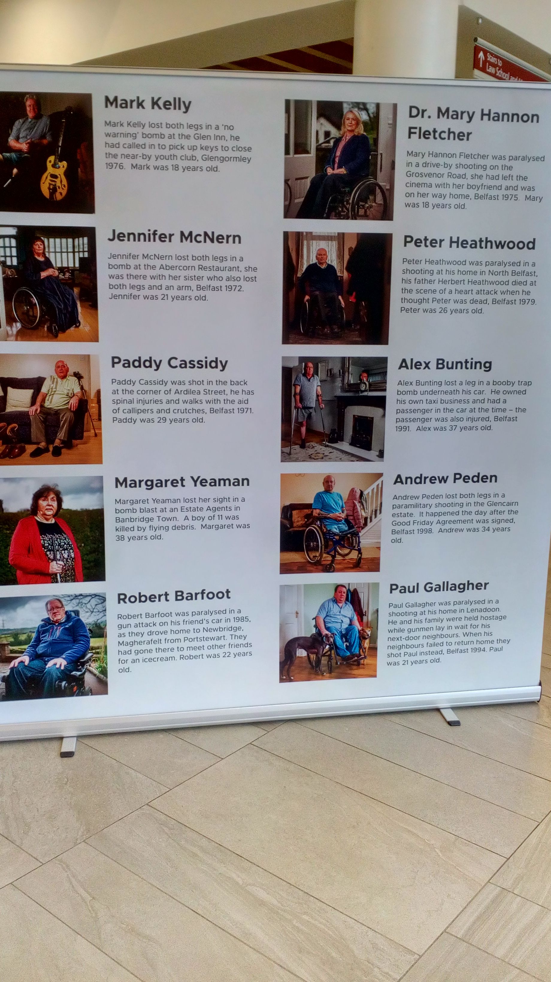 When I was at Queen's having a coffee with Marek, there was an exhibit on about victims of the Troubles. Each of the people pictured below lost arms, legs, eyesight to bombs. One woman had just seen a film with her boyfriend. One had just bought an ice cream with his friends. One was in his shop when the windows were blown in.
