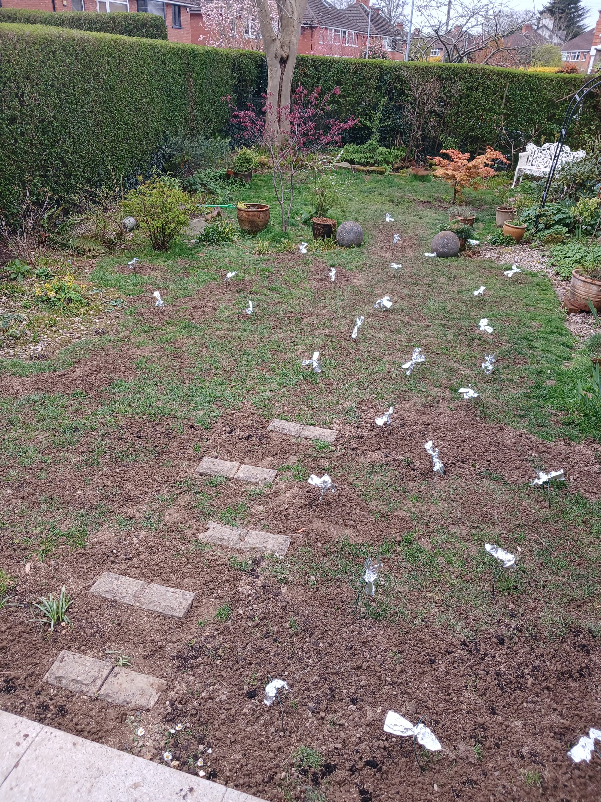 I was in Donegal 8-11 April. When I came back, I carried lots of buckets of soil to the back half of the back garden, trying to level it up. Then spread seed and fertiliser, while also doing a second application of seed, soil, fertiliser in the section I did pre-Donegal. I am now watering it every day and hoping all this bloody hard work pays off.